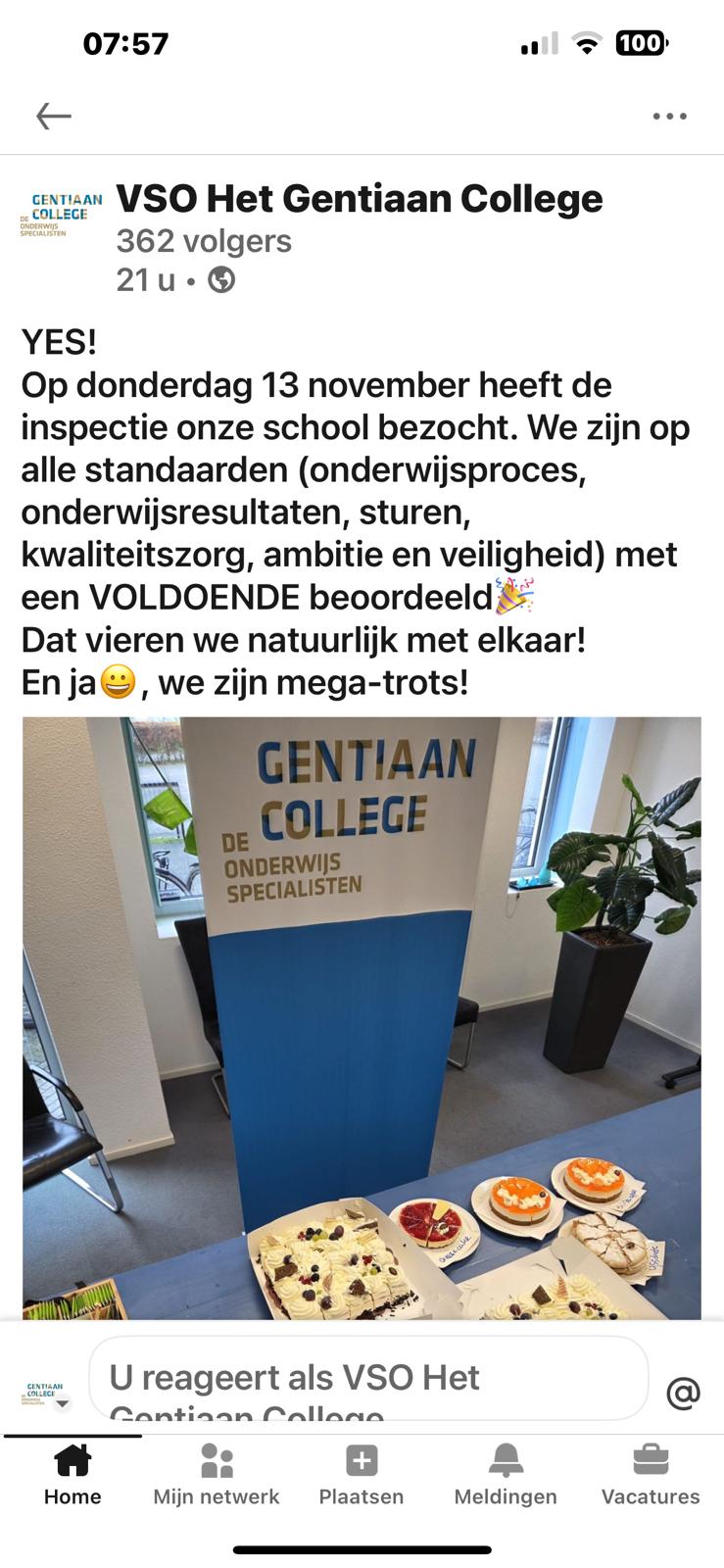 Inspectiebeoordeling: Gentiaan College scoort een voldoende op alle standaarden!